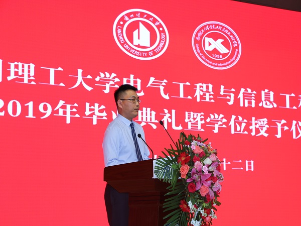 陈伟副院长代表学院党政向全体毕业生致辞,寄语毕业生们:不断学习、努力成人;踏实工作、勇于担当;珍惜缘分、勿忘初心。他希望各位毕业生时刻传承“艰苦奋斗,自强不息,求真务实,开拓创新”的红柳精神,努力学习工作,以优异的成绩回报母校,共庆百年华诞。