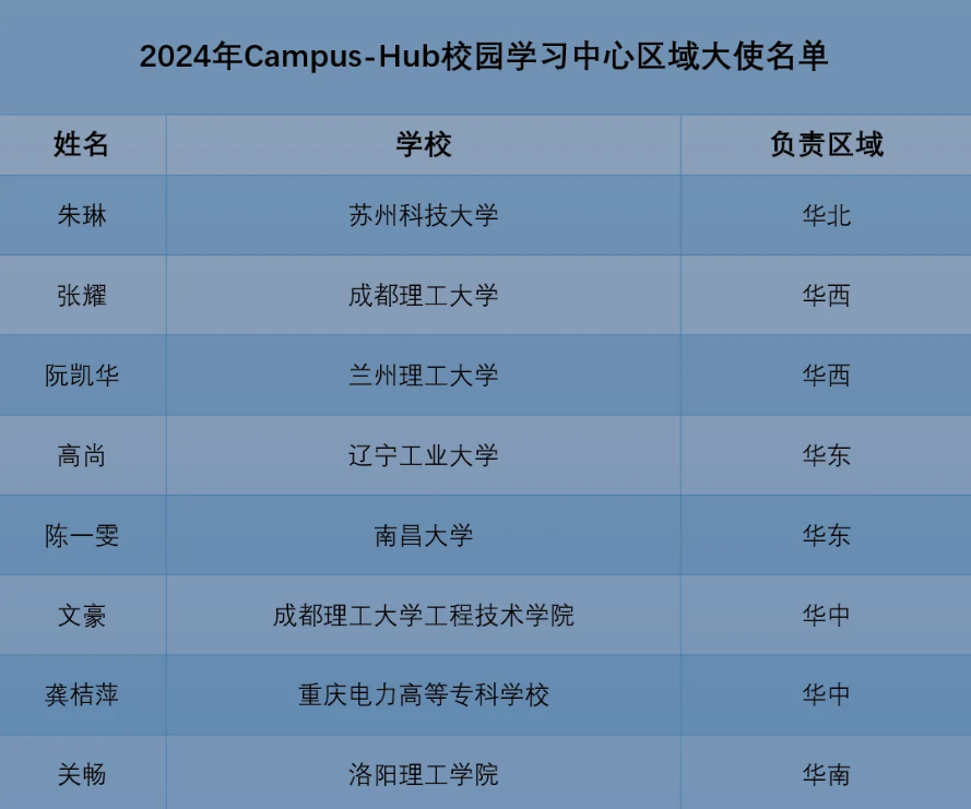 组委会公布全国Campus-Hub区域大使名单