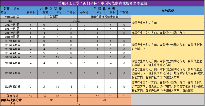 我校自2010年开始至今在挑战赛中取得的比赛成绩
